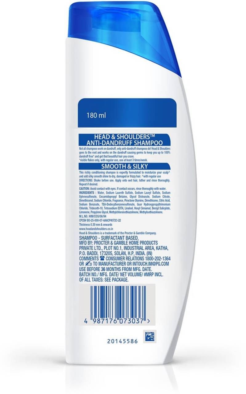 HEAD & SHOULDERS Smooth and Silky Anti-Dandruff Shampoo for All-Hair Types (180 ml)