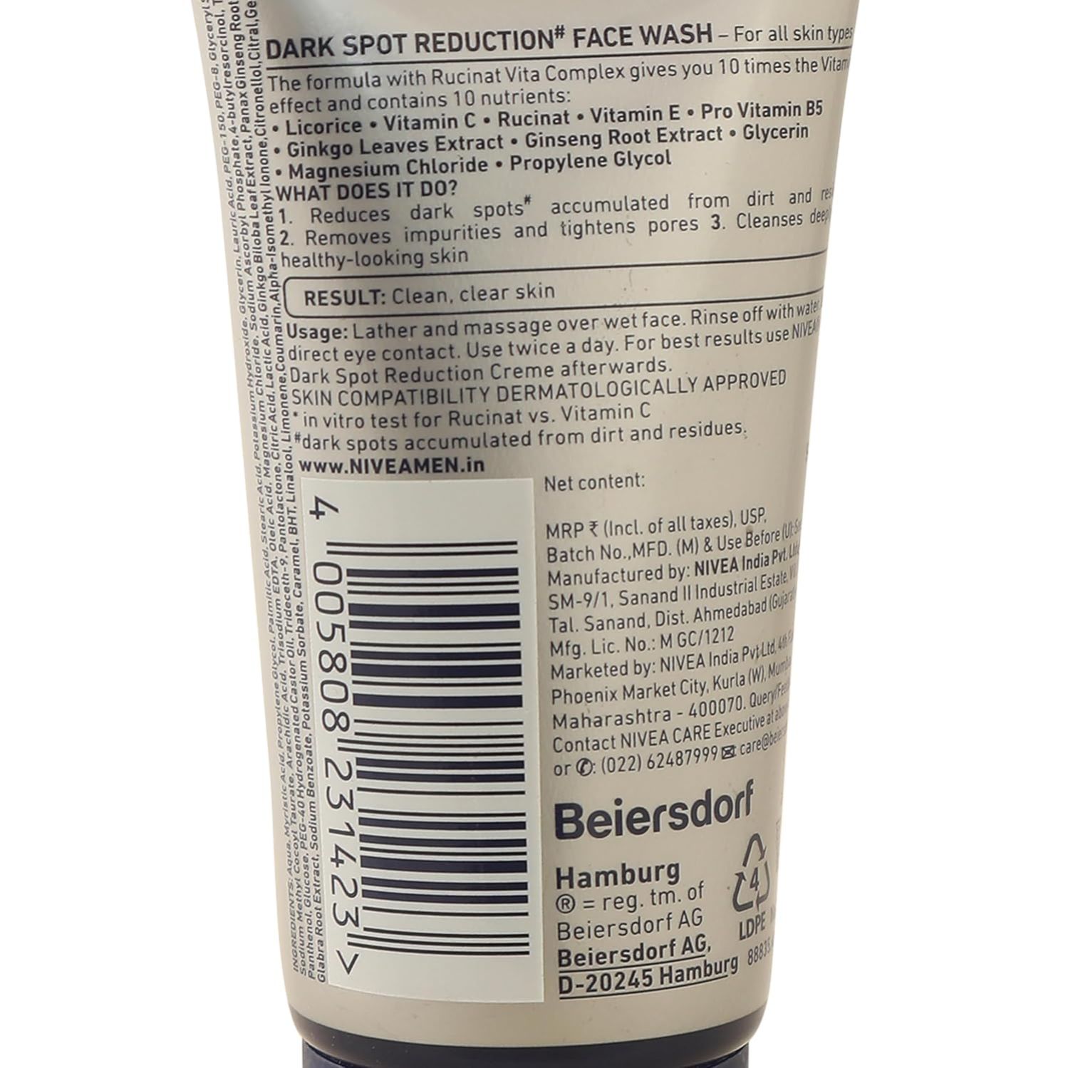 **"NIVEA MEN Dark Spot Reduction Face Wash खासतौर पर पुरुषों की स्किनकेयर ज़रूरतों को ध्यान में रखकर बनाया गया है। इसमें मौजूद 10X Vitamin C, Ginseng और Ginkgo Extracts गहराई से स्किन की सफाई करते हैं, अतिरिक्त तेल और धूल-मिट्टी को हटाते हैं और डार्क स्पॉट्स को कम करने में मदद करते हैं।